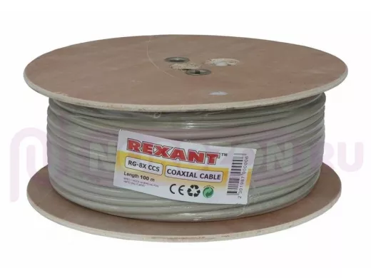 Заказать звонокRG8X кабель коаксиальный серый 50 Ом для мобильного интернета 4G и LTE,CCS/Al/A 75 % 100м "REXANT"