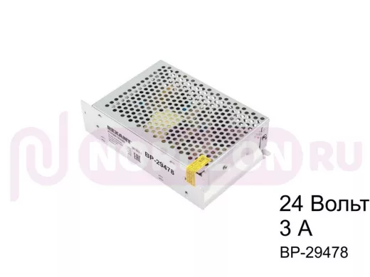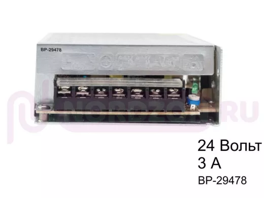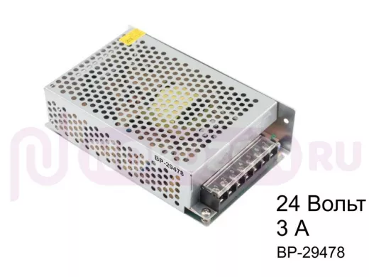 Заказать звонокБлок питания 24 Вольта 3000mA "BP-29478" 72W с разъёмами под винт, без влагозащиты (IP23)