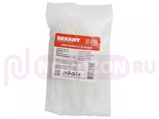 Заказать звонок100х2,5мм кабельный хомут под винт (стяжка нейлонoвая) белая (100 шт) nylon REXANT