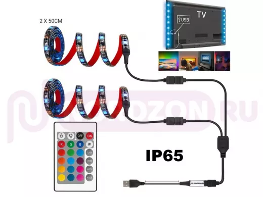 В корзину Купить в 1 клик "ABBIKUS-126181" RGB светодиодная лента 2*0.5м, штекер USB, пульт управления