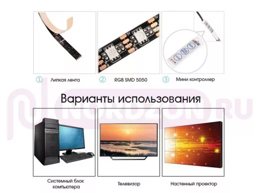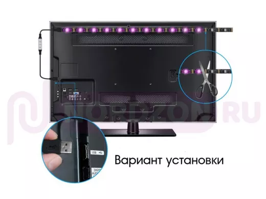 Заказать звонок"ABBIKUS-126166" RGB светодиодная лента 1м, штекер USB, кнопка переключения
