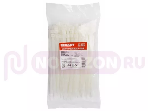 Хомут нейлоновый (кабельная стяжка) 200х7,6 мм белый REXANT предназначен для крепления или обвязки в жгут кабелей и проводов, крепления гибких гофротруб, а также других предметов к несущей поверхности или для соединения между собой. Такая стяжка используется при проведении электромонтажных работ, при монтаже структурированных кабельных систем, для бытовых нужд, а также в других отраслях народного хозяйства.