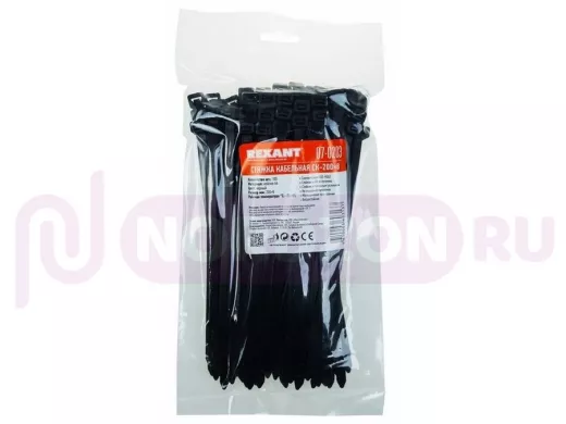 Хомут нейлоновый (кабельная стяжка) 200х7,6 мм чёрный REXANT предназначен для крепления или обвязки в жгут кабелей и проводов, крепления гибких гофротруб, а также других предметов к несущей поверхности или для соединения между собой. Такая стяжка используется при проведении электромонтажных работ, при монтаже структурированных кабельных систем, для бытовых нужд, а также в других отраслях народного хозяйства.