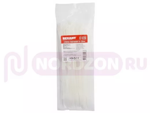 Заказать звонок250х4мм кабельный хомут (стяжка нейлонoвая) nylon белая (100 шт) белая REXANT