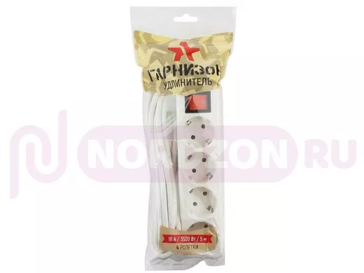 Удлинитель Гарнизон ELB-G4-W-5, 4 евророзетки с выключателем и заземлением, допустимый ток 16А