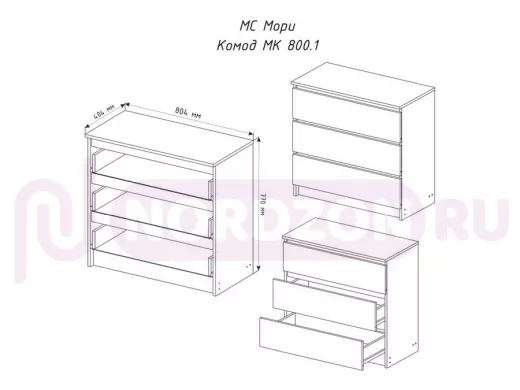 Заказать звонокКомод МК 800.1 804*770*404 МС Мори ЛДСП Корпус/фасад белый