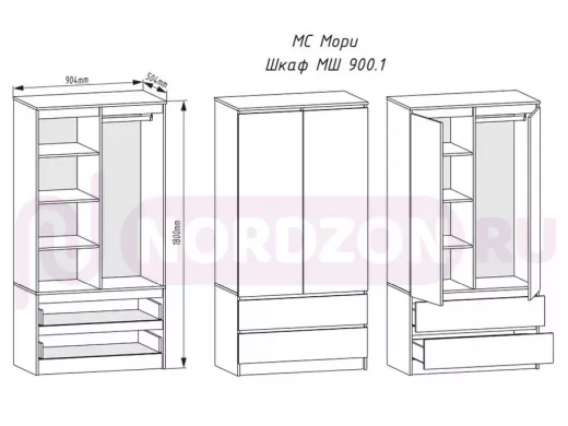 Заказать звонокШкаф МШ 900.1 904*1800*504 МС Мори ЛДСП Корпус/фасад белый