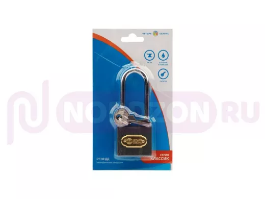 Навесной замок 40 мм чугун длинная дужка "Четыре Сезона" 79-0024