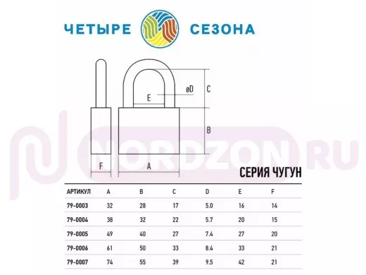 Заказать звонокНавесной замок 40 мм чугун "Четыре Сезона" 79-0004