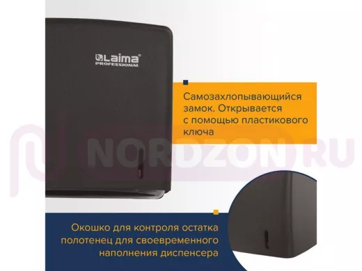 Диспенсер для полотенец LAIMA PROFESSIONAL ORIGINAL предназначен для экономичного расхода бумажных полотенец. Универсальное решение для туалетных комнат высокой и средней проходимости.
