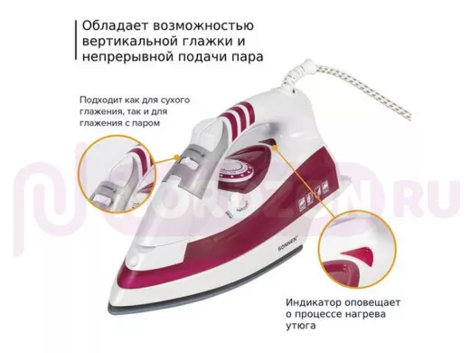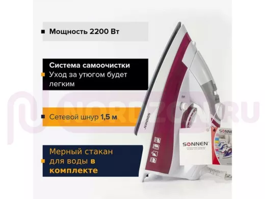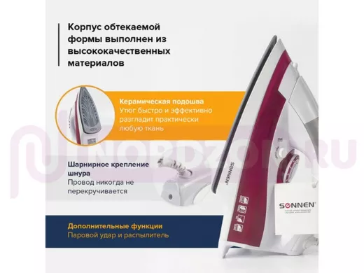 SONNEN SI-218 - простой в использовании утюг, позволяющий легко прогладить одежду и постельное бельё. Подходит как для сухого глажения, так и для глажения с паром.