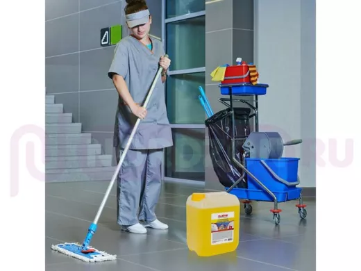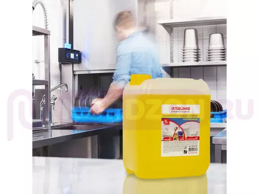 Также возможно применение на поверхностях из линолеума, камня, металла, стекла, керамики, фаянса, ПВХ. Средство объемом 5 л разрешено для применения в быту, кафе, ресторанах, комбинатах общественного питания, лечебно-профилактических, учебных и детских учреждениях. Специальная формула позволяет эффективно растворять и эмульгировать масла и жиры растительного и животного происхождения, очищать поверхности от комбинированных застарелых загрязнений. Средство работает в воде любой жесткости и температуры. Нетоксично, полностью безопасно при использовании по назначению. Способ применения: Развести 60 мл средства (две крышки) на 5 л воды и вымыть загрязненную поверхность (посуда, пол, кафель, сантехника), затем смыть водой. Меры предосторожности: Соблюдать стандартные меры предосторожности при использовании моющих средств. Избегать попадания средства в глаза, в случае попадания промыть большим количеством воды. При чувствительной коже рук рекомендуется использовать резиновые перчатки. Состав: вода очищенная, менее 5% АПАВ, менее 5% амфотерного ПАВ, хлорид натрия, каустическая сода, парфюмерная композиция, консервант, краситель. Соответствует ТУ 2383-002-18461799-01. Приобрести универсальное моющее средство LAIMA PROFESSIONAL можно в нашем интернет-магазине.