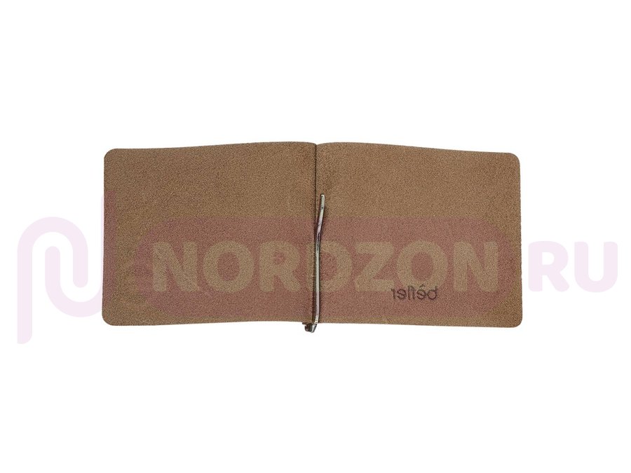 Зажим для купюр выполнен из натуральной кожи. На внутреннем развороте удобная металлическая фурнитура. Отличительная черта: тиснение "знак евро".
