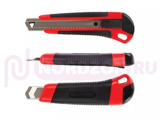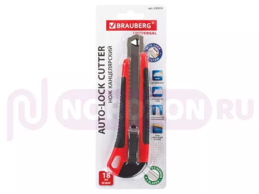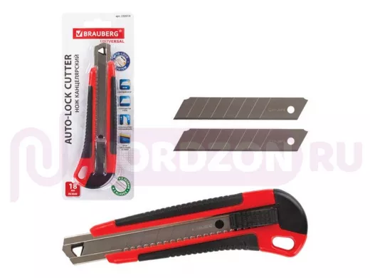 Заказать звонокНож канцелярский 18 мм "BR-71559" "Universal", 3 лезвия в комплекте, автофиксатор,резин.вставки