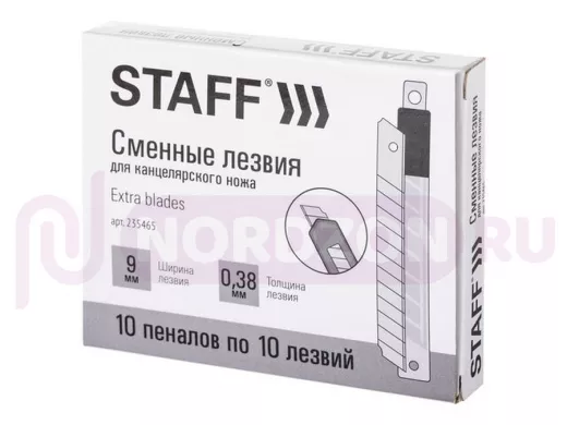 Заказать звонокЛезвия для ножей 9 мм КОМПЛЕКТ 10 ШТ, толщина лезвия 0,38 мм, в пластиковом пенале "BR-71575"