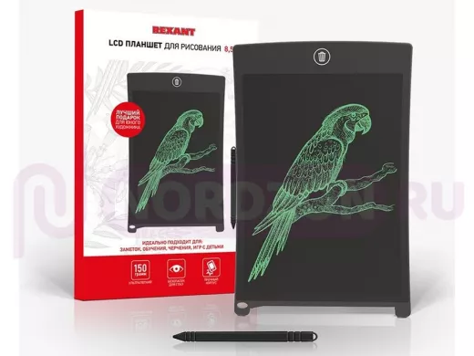 Планшет Rexant® 8,5 дюймов предназначен для фиксирования заметок и создания графических простейших рисунков. Он избавит от необходимости держать под рукой блокноты, бумагу для записей, переводить кучу бумаги на временные записи и покупать бесконечно альбомы для детских зарисовок.