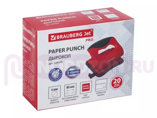Заказать звонокДырокол "BR-111927" "JET PRO", до 20 листов, красно-черный