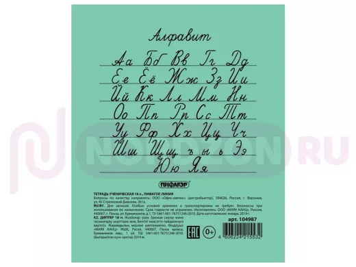Тетрадь ПИФАГОР с классической зеленой обложкой подойдет для занятий школьнику преимущественно начальных и средних классов. На обороте представлена дополнительная информация.
