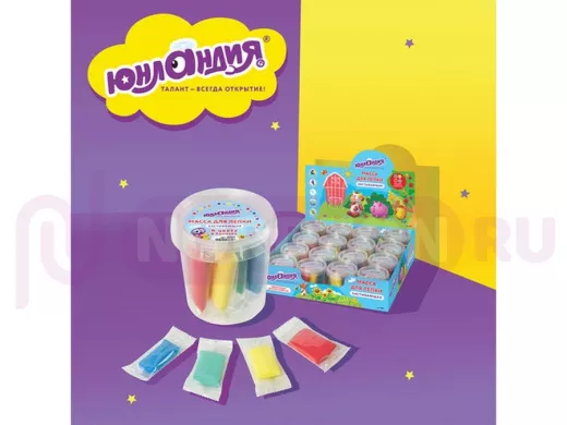 Обладает прекрасными пластичными свойствами. Мягкая и воздушная. Застывает на воздухе через непродолжительное время, сохраняя форму изделия. С готовыми фигурками можно играть после застывания. Прекрасно держится НА ВОДЕ. Масса для лепки состоит из безопасных компонентов, поэтому подходит детям от 3-х лет. В наборе 4 цвета, помещенных в пластиковый стакан. Масса для лепки ЮНЛАНДИЯ – не только игровой материал, но и обучающий, развивающий процесс. Спешите приобрести все необходимое для детского творчества в нашем интернет-магазине!