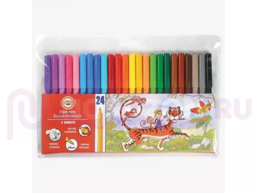 Фломастеры "BR-101267", 24 цвета, смываемые, трехгранные, пластиковая упаковка, европодвес
