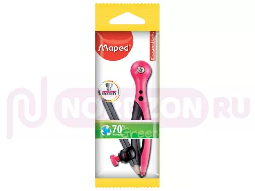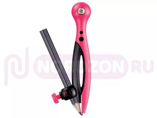Пластиковый циркуль с безопасным острием. Безопасная игла. Упаковка с подвесом. Мини-карандаш в комплекте. Поставляется в нескольких вариантах цвета (без возможности выбора).
