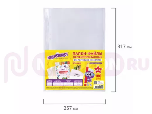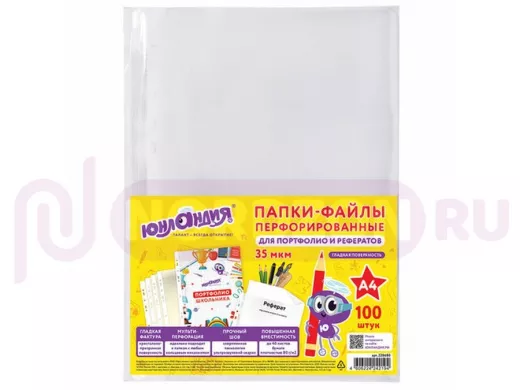 Перфопапки формата А4 с вертикальным размещением содержат универсальную перфорацию, а также имеют гладкую поверхность и прочные швы. Файлы являются незаменимым атрибутом в офисе, позволяют систематизировать документы и обеспечивают их сохранность на долгое время. Изготовлены из пленки толщиной 35 мкм. В комплект входит 100 перфопапок. С папками-файлами ЮНЛАНДИЯ выполнять повседневные задачи станет проще, чем когда-либо. Не упустите возможность приобрести перфорированные папки-файлы ЮНЛАНДИЯ в нашем интернет-магазине!