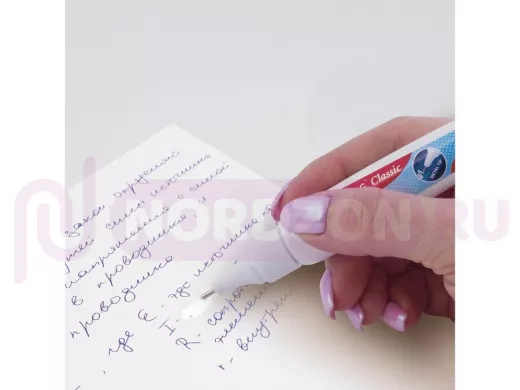 Инструкция по работе с корректирующей ручкой: - Корректирующая ручка оснащена клапанным механизмом, и подача жидкости осуществляется с помощью нажатия на наконечник ручки. - Корректирующую ручку перед использованием ОБЯЗАТЕЛЬНО необходимо встряхнуть (в корпусе ручки находится металлический шарик). - Наконечник ручки необходимо прижать к поверхности, чтобы началась подача жидкости. - На корпус ручки не следует оказывать повышенное физическое давление, за исключением случаев, когда ручкой давно не пользовались.