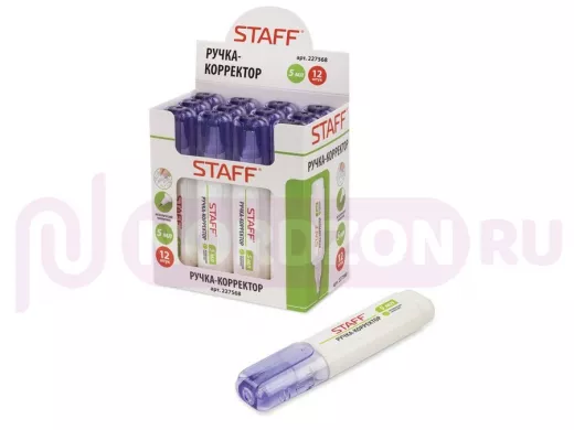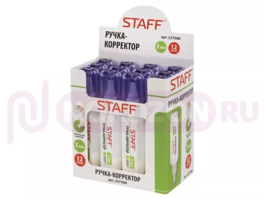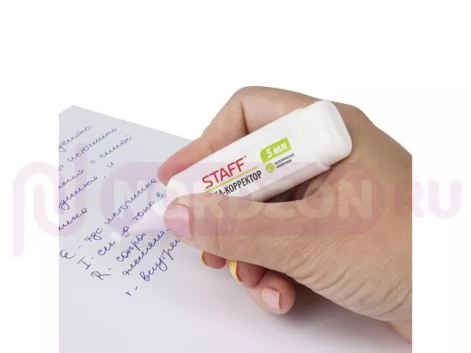 Ручка-корректор STAFF для наиболее аккуратного и точного исправления печатного и рукописного текста. Надёжный металлический наконечник обеспечивает экономичный расход корректирующей жидкости и повышенную точность нанесения.