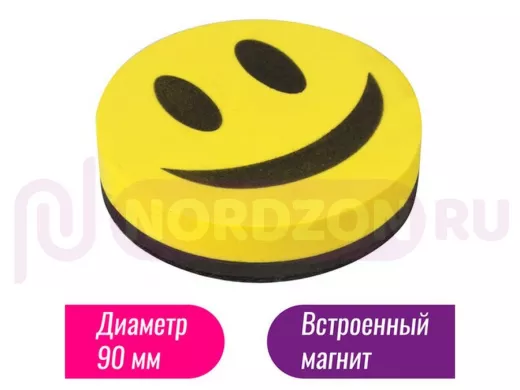 Заказать звонокСтиратель магнитный для магнитно-маркерной доски, круглый, диаметр 90 мм, "Смайлик" "BR-76943"