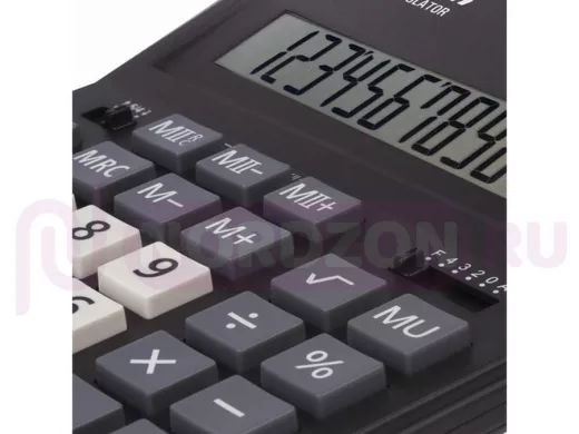 Имеет две независимые памяти, возможность установки режимов округления и ограничения количества знаков после запятой, клавишу корректировки введенного последнего знака, клавишу "Два нуля". Разрядность дисплея - 12 выводимых на табло цифр, позволяет работать с крупными числами. Клавиша вычислениея MU предназначена для финансовых расчетов с учетом торговой наценки. Для экономии энергии предусмотрены два источника питания: солнечная и алкалиновая батареи. Благодаря крупному дисплею и клавишам настольный калькулятор легок в использовании. Черно-серый цвет модели отлично впишется в офисный и домашний интерьер. Не упустите возможность приобрести калькулятор STAFF PLUS STF-333 по привлекательной стоимости в нашем интернет-магазине!