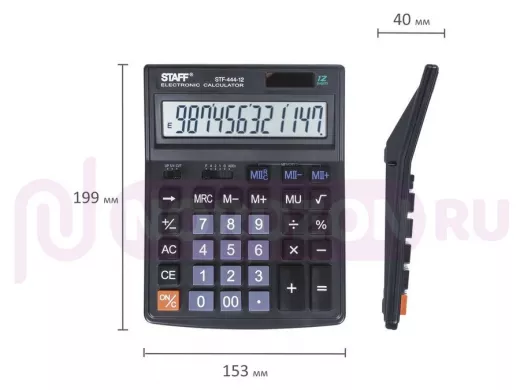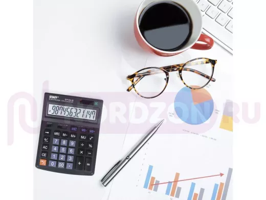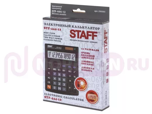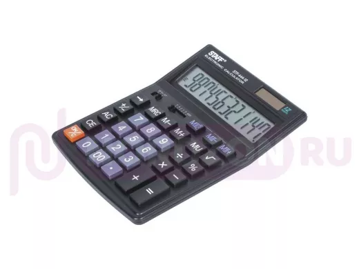 Простой в использовании и точный в расчётах настольный калькулятор STAFF STF-444-12 выполняет все необходимые вычисления на работе и дома. Кнопки нажимаются легко и приятно, эргономичный наклон корпуса позволяет работать с максимальным комфортом.