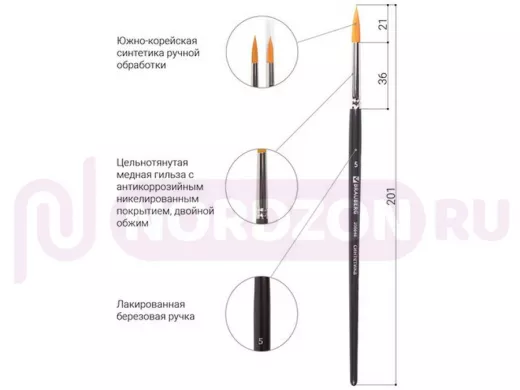 Изготовлена из высококачественной южно-корейской синтетики. Синтетика превосходит щетину в сохранении формы мазка, легкости очистки и износостойкости.