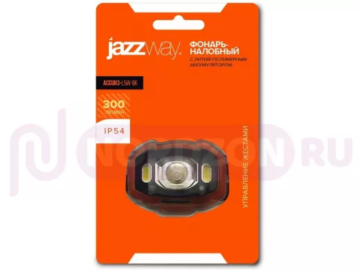 Заказать звонокФонарь Jazzway AccuH3- L5W-bk налобный чёрный ( Micro USB, 300 Лм, IP54, литий-полимерный аккумулят