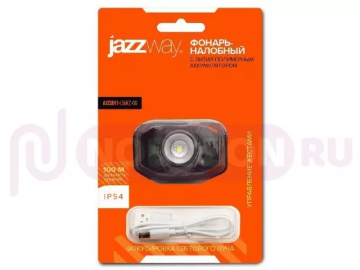 Фонарь Jazzway AccuH1- L5WZ-og, оранжевый ( фонарь налобный зуммитруемый, с литий-полимерным аккуму