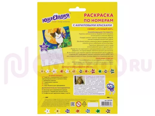 Заказать звонокРаскраска по номерам А5, "BR-79375" "ЛУННЫЙ КОТ", С АКРИЛОВЫМИ КРАСКАМИ, на картоне, кисть