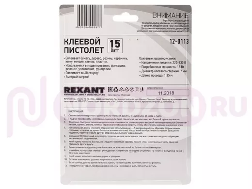 Заказать звонокПистолет клеевой 15Вт O7мм Малый (блистер) REXANT