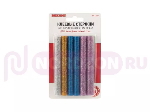 Заказать звонокКлеевые стержни, диаметр 11,0мм, длина 100мм, цветной с блестками (12шт) REXANT цена за 1 упаковку