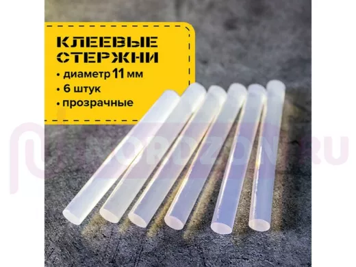 Заказать звонокКлеевые стержни, диаметр 11,0мм, длина 100мм, прозрачные, КОМПЛЕКТ 6 шт. "BR-79850",европодвес