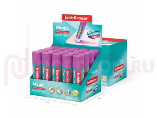 Клей-карандаш "Magic", 15 г "BR-102886", обесцвечивающийся после высыхания