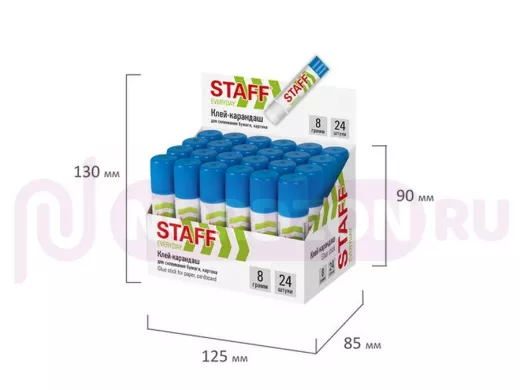 Компактный объем - 8 г. Клей-карандаш STAFF легко наносится и распределяется по поверхности. Не токсичен и безопасен для здоровья. Удобен в использовании: он не пачкает руки, стол, одежду; легко удаляется при помощи воды. Плотно прилегающий колпачок предотвращает высыхание клея. Срок годности - 3 года. Разумная экономия для офиса! Заказать клей-карандаш STAFF можно на нашем сайте. Спешите оформить заказ!