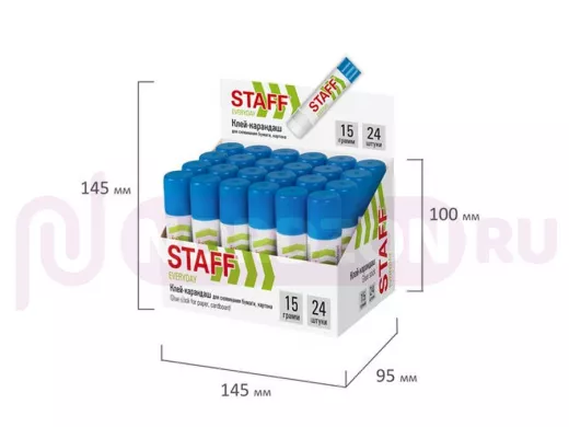 Объем - 15 г. Клей-карандаш STAFF легко наносится и распределяется по поверхности. Не токсичен и безопасен для здоровья. Удобен в использовании: он не пачкает руки, стол, одежду; легко удаляется при помощи воды. Плотно прилегающий колпачок предотвращает высыхание клея. Срок годности - 3 года. Разумная экономия для офиса! Заказать клей-карандаш STAFF можно на нашем сайте. Спешите оформить заказ!