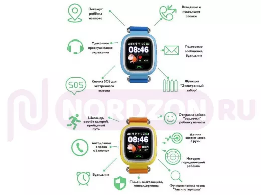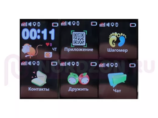 - Функции: кнопка SOS, тайное прослушивание микрофона родителями, просмотр маршрута, датчик снятия с руки, антипотеря, оповещения выхода из указанного района