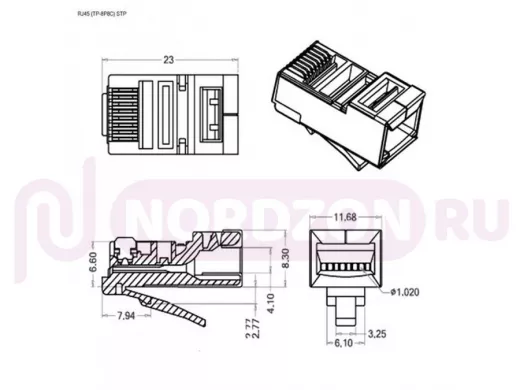 Заказать звонокRJ45 (TP-8P8C) STP RJ раъём с экраном на витую пары