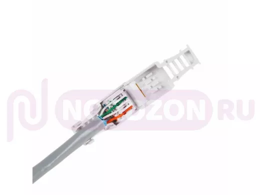 Монтаж на кабель витая пара осуществляется руками с помощью специальных зажимов/ножей внутри корпуса джека и не требует никаких специальных инструментов (зачисток и обжимных). Благодаря современной конструкции, кабель надежно фиксируется, что исключает его выпадения из джека. Данный вариант прекрасно подойдет в тех случаях, когда нужно заменить один или два джека, и хочется обойтись без покупки дорогостоящего обжимного инструмента.