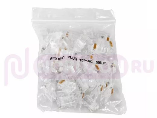 Джек RJ-45 10P10C CAT 5e REXANT предназначен для соединения телекоммуникационного оборудования: компьютеры, офисные АТС, сетевые коммутаторы, концентраторы, коммутационные панели, маршрутизаторы, патч-панели в телекоммуникационных стойках, сетевые карты, а также другого оборудования, имеющего разъем 10P10C. Джек RJ-45 10P10C (англ. Registered jack) размещают на конце компьютерных или телефонных кабелей для соединения с розеткой, хабом, свитчем, сервером, модемом, роутером или другим компьютером. Штекер изготовлен из прозрачного качественного пластика и имеет 10 посадочных мест и 10 ножей-контактов. На контакты (ножи) нанесен слой технического золота 3мкм для безупречной пропускной способности разъема. Для опрессовки разъема на кабеле необходим специальный обжимной инструмент. При производстве продукции использованы качественные и долговечные материалы, обеспечивающие высокий уровень передачи данных.