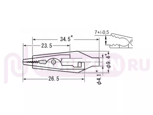 Зажимное устройство типа «крокодил» предназначено для оперативного подключения, отключения к цепям электрических или радиоэлектронных устройств при выполнении монтажных, наладочных, ремонтных, контрольно-измерительных и т.п. работ. Представляет собой механический зажим типа «прищепка» с подпружиненными зубчатыми контактами, нажимные поверхности которого для обеспечения условий электробезопасности, как правило, закрыты ПВХ- изолятором . «Крокодилами» оконцовывают электрические изолированные многожильные провода, снабженные с другой стороны разъемами требуемых типов. Типоразмер зажима выбирается с учетом видов подключаемого оборудования, величин токов в цепях устройств и требований электробезопасности.