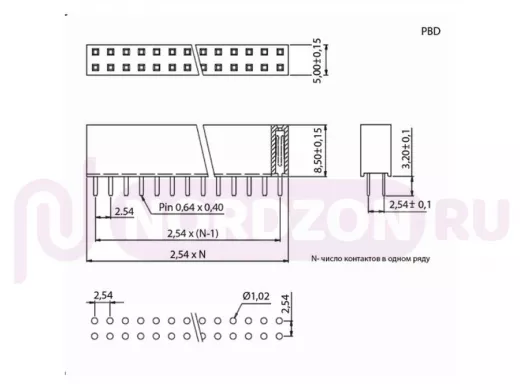 Заказать звонокPBD 16 Штыри и гнезда для плат 2.54мм РАЗЪЕМЫ
