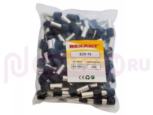 Наконечник штыревой втулочный изолированный F-16 мм 25 мм² (НШВи 25-16) черный REXANT