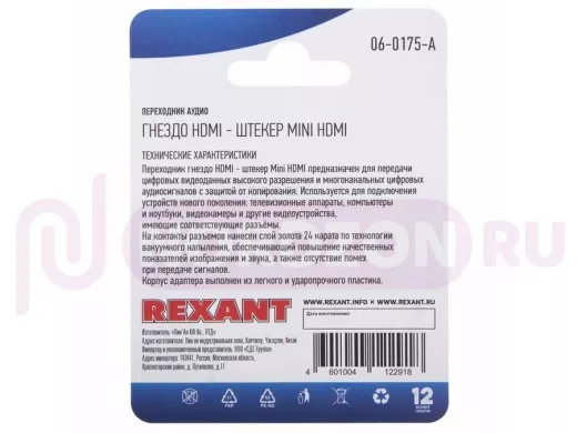 Заказать звонокПереходник аудио (гнездо HDMI - штекер mini HDMI), (1шт.) REXANT