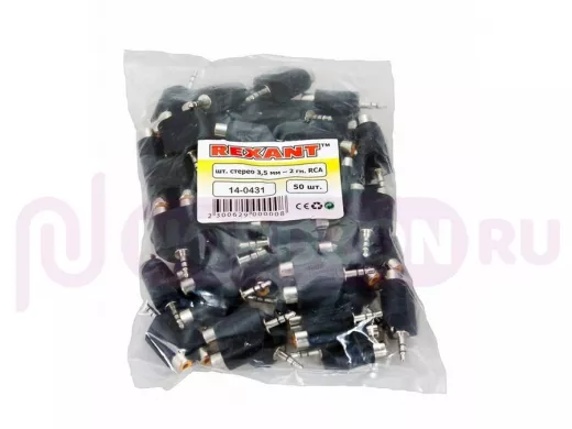 Переходник штекер 3.5мм стерео - 2гнезда RCA REXANT предназначен для разделения каналов аналогового стерео аудиосигнала идущего по одному кабелю на два раздельных кабеля с переходом на другой тип разъема (RCA). С одной стороны адаптера располагается штекер разъема 3.5мм Stereo, а с другой два гнезда RCA (в просторечии "тюльпан", традиционный стандарт для аналоговой видео и аудиотехники). Разделитель аудиоканалов используется для совместной эксплуатации домашней и профессиональной аудиоаппаратуры (микрофоны, электронные музыкальные инструменты, плееры, усилители звука, телевизоры, акустические системы, видеоприставки, мобильные телефоны и т.п.), имеющей разъемы разного типа. Корпус адаптера изготовлен из лёгкого и ударопрочного пластика с рифлением для предотвращения соскальзывания при монтаже, а контакты никелированы. Простая конструкция и высокотехнологичное исполнение переходника гарантирует передачу аудиосигнала с минимальным уровнем потерь.